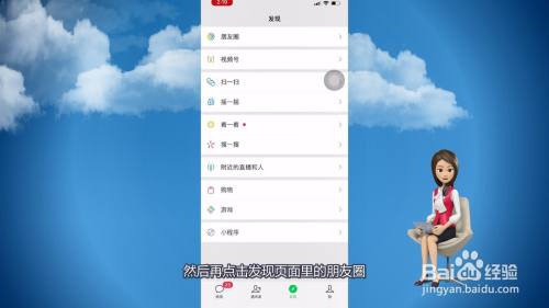 然后再点击发现页面里的朋友圈。