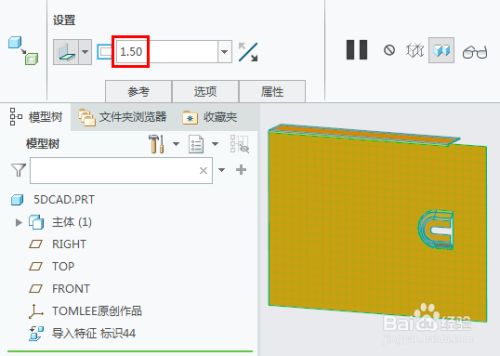 选择一个面作为钣金驱动曲面,然后软件会主动为您捕获到当前的壁厚尺寸,也可以本身直接输入点窜。