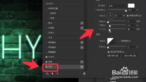 勾选投影,选择黑色,不透明度100%,角度90度。