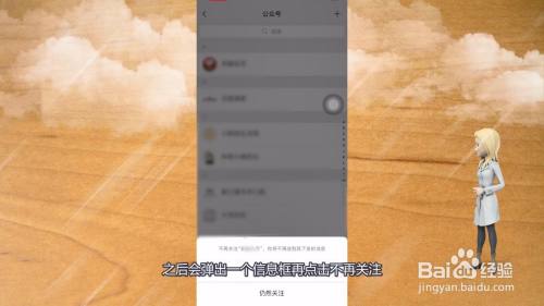 5、之后会弹出一个信息框再点击不再存眷,即可彻底删除该公家号的订阅号动静。