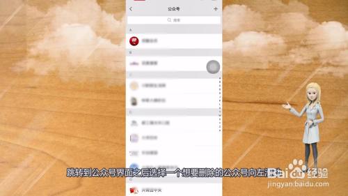 跳转到公家号界面之后选择一个想要删除的公家号标的目的左滑动。