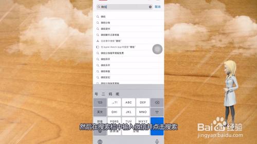 3、然后在搜刮栏中输入微信并点击搜刮。