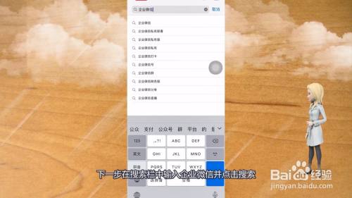 下一步在搜刮栏中输入企业微信并点击搜刮。