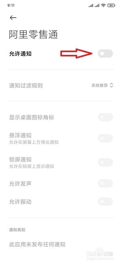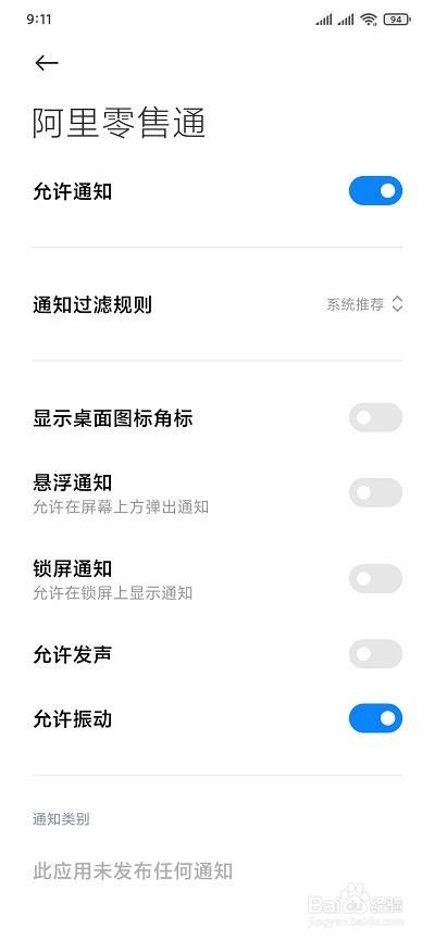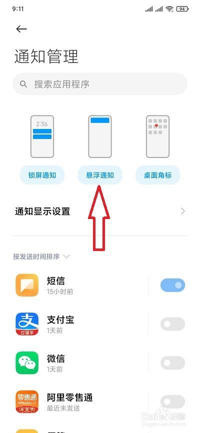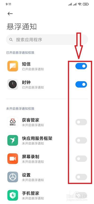 这下,我们按照本身的需求,将需要开启或封闭悬浮通知的右侧开关按钮点击开启或者封闭。(开关按钮显示蓝色为开启,灰色为封闭)