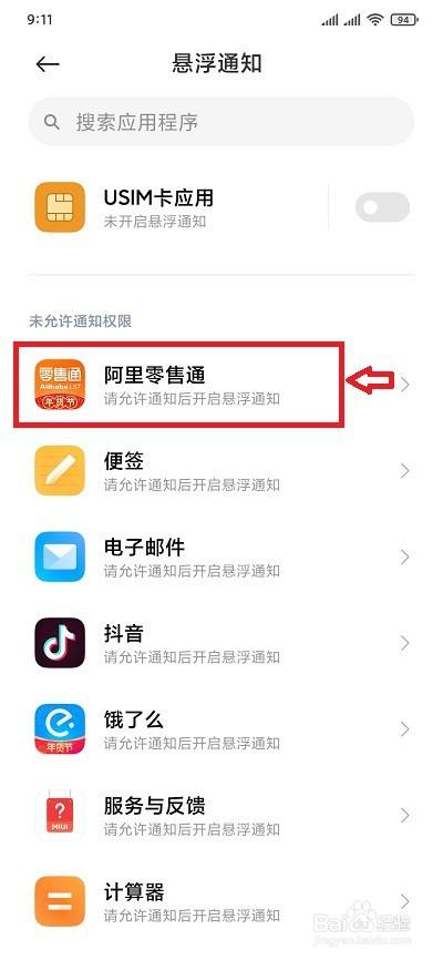 同时在该悬浮通知页面,我们在最下方也可以看到未许可通知权限的应用,需要开启的话,我们点击先应用