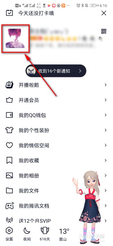 打开QQ,点击左上角小我头像。