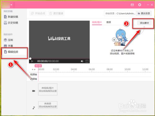 打开bilibili投稿东西,点击左边东西栏【编纂视频】,进入视频编纂窗口后,再点击【添加素材】。