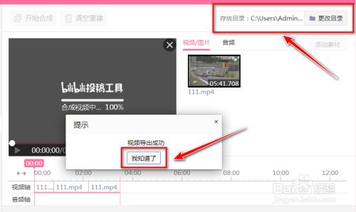 期待视频合当作完毕,视频的保留目次的路径在bilibili投稿东西右上角写着,点击路径可直接打开目次。