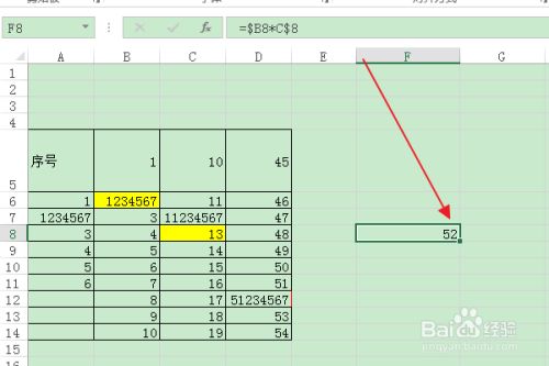 在该单位格中输入“=$B8*C$8”公式。