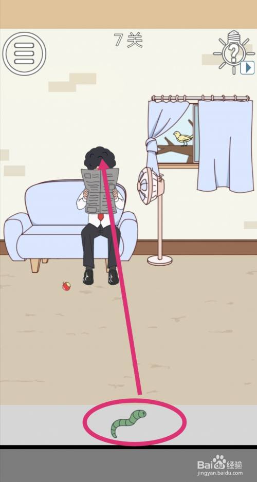 点击获得苹果上的【虫子】,再点击打开窗帘。