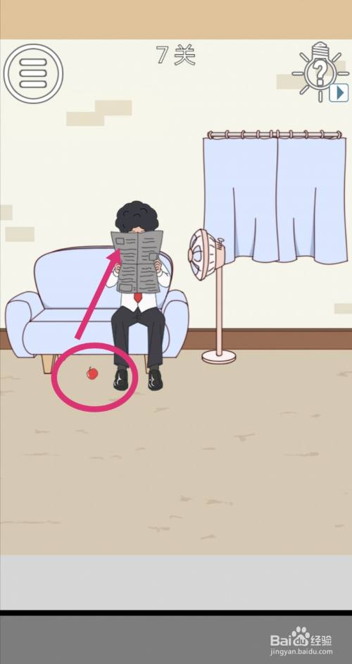 点击在看报纸的爸爸,爸爸就会挠头发,失落出来一个【苹果】。