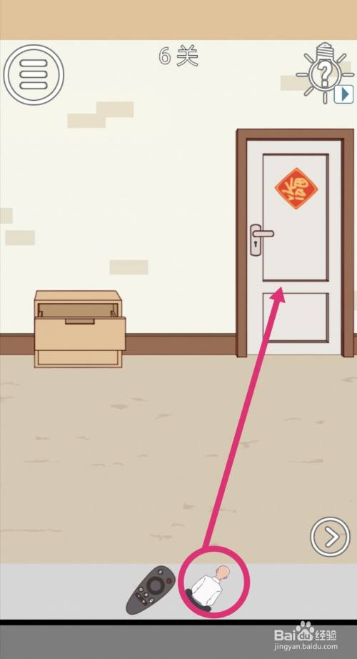 回到左侧场景,点击拖动【秃顶爸爸】对房间门利用。