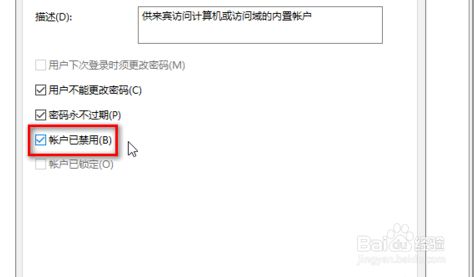 在属性的界面,将“账户已禁用”的勾去失落,然后点击确定,这样win10就可以毗连共享打印机了。