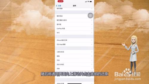 随后将通用界面标的目的上滑动并点击底部的还原。