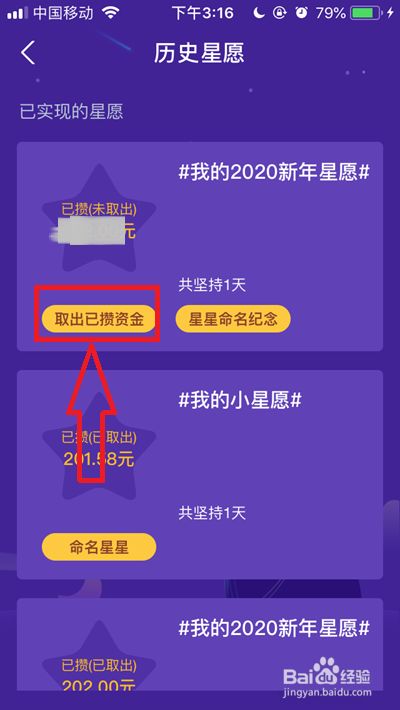 在汗青星愿页面,找到未掏出的资金,然后点击【掏出已攒资金】