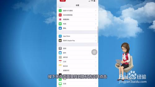 接下来在页面里找到隐私选项并点击。