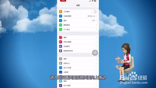 进入到设置页面后将页面标的目的上滑动。
