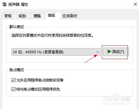 点击测试按钮,注重聆听音响是否有声音,可以按照需要调整摆布声道音量。