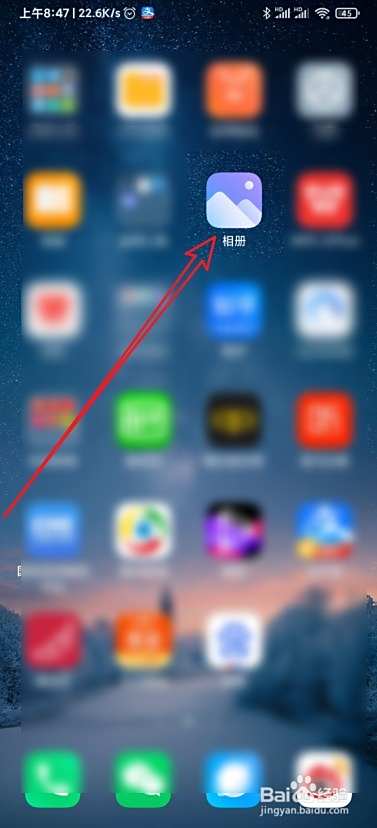 在手机屏幕上摆布滑动,点击小米相册图标。