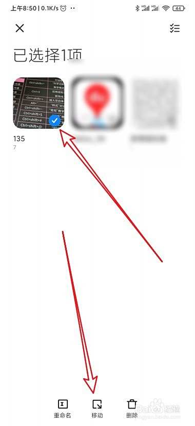 接着在打开的相册中勾选要移除的相册,然后点击底部的移动按钮。