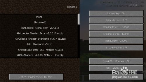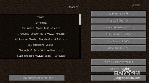 按esc打开菜单,找到shaders.....这个选项并打开