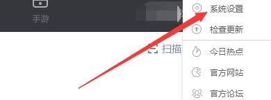 在弹出下拉栏中,点击“系统设置”