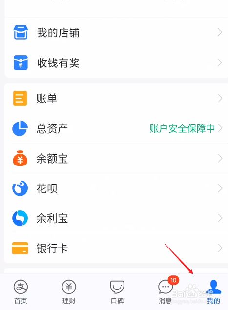 打开支付宝应用,打开我的页面。