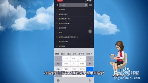 2、在搜索框里输入全民使命小助手并搜刮。