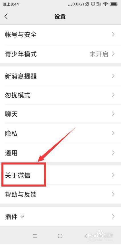 在“设置”界面,找到位于屏幕中下方的“关于微信”选项并点击。