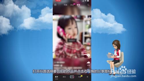 1、打开抖音选摘要合拍的作品并点击右下角的分享图标。