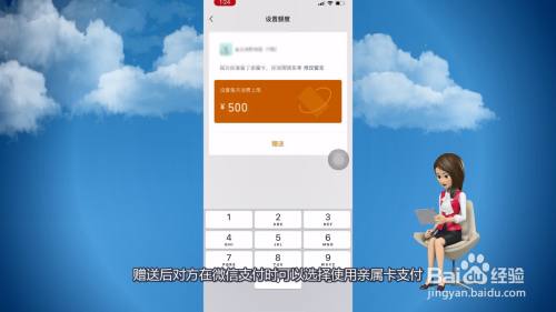 7、最后输入亲属卡金额并进行赠予,赠予后对方在微信支付时可以选择利用亲属卡支付。