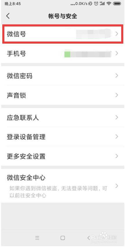 在“账号与平安”选项卡的就能找到“微旌旗灯号”这个选项,在这里就可以更改微旌旗灯号了。