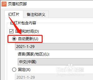 然后,在弹出框中,点击“幻灯片”,点击选择“主动更新”。如图:
