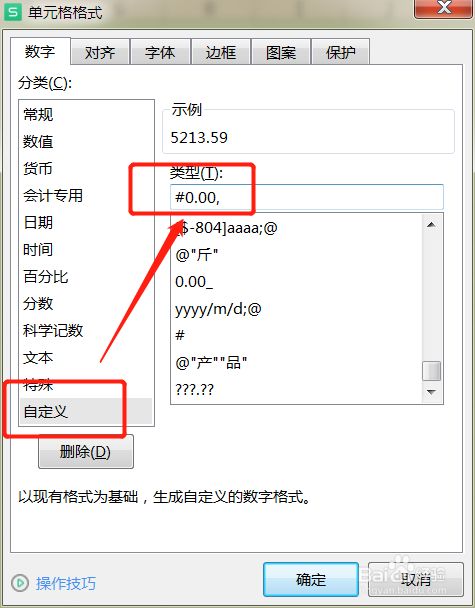 点击自界说,设置为【#0.00,】,点击确定。