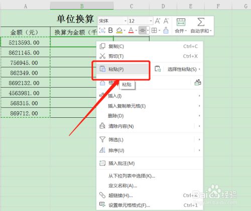 选中适才粘贴来的数据右击选择设置单位格格局。