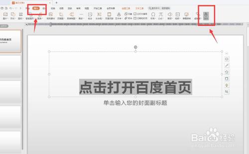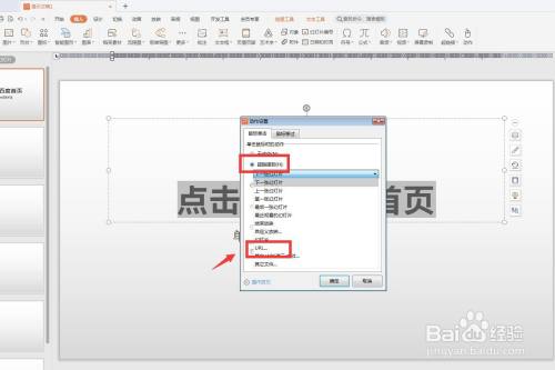 选中文字,点击插入,右上角选择动作。