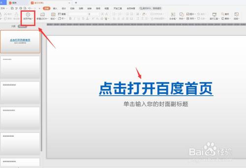 启动WPS软件,新建演示版,我新建多个页面输入文字示范一下。
