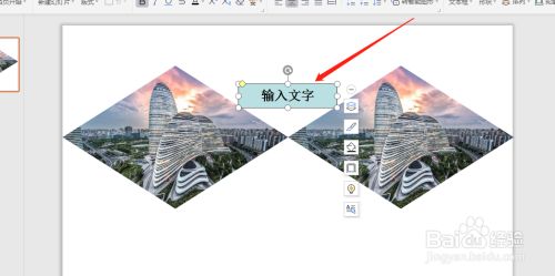 建造菱形图文排版,最后输入文字就可以了,如图所示。