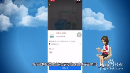 6、最后选择配送地址点击用积分当即兑换商品即可。