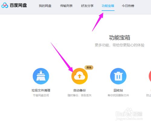 打开百度网盘电脑端,在功能宝箱页面,点击主动备份。
