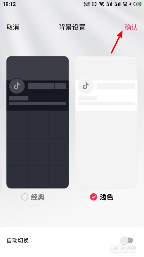 进入布景设置页面后,我们选中点击【淡色】,选择好后接着点击【确认】;
