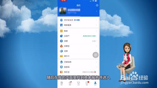 随后在我的页面里找到商家办事并进入。