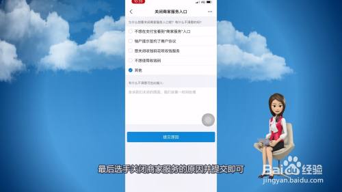 6、最后选择封闭商家办事的原因并提交即可。