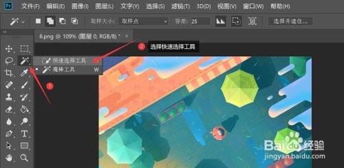 打开ps软件,在左侧东西栏中点击魔棒东西右下方的倒三角形—>在弹出的选项卡中选择快速选择东西