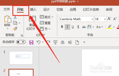 1.先打开PPT文件,选中公式后,点击“起头”选项卡。