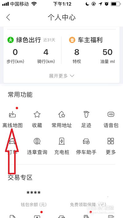这下,我们进入了百度地图小我中间页面,我们在常用功能栏面前目今,点击【离线地图】