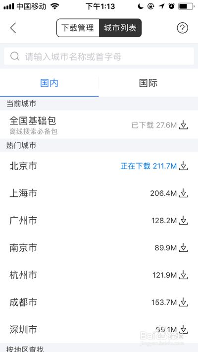 选摘要下载的城市地图,点击右侧的下载图标。