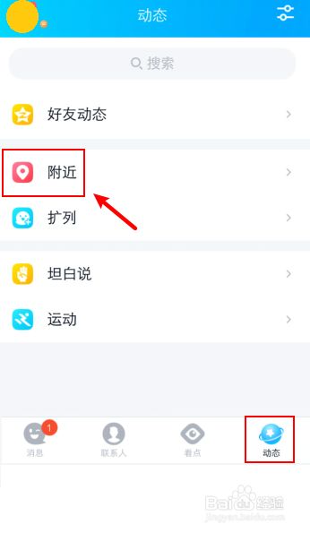 手机打开QQ,点击下方的“动态”,再点击“四周”。