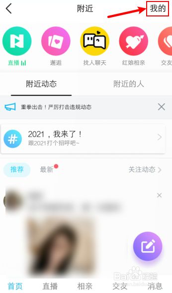 在四周页面,点击右上角的“我的”。