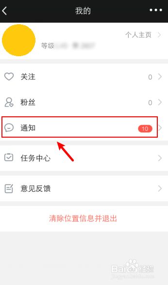 在我的页面,点击“通知”。